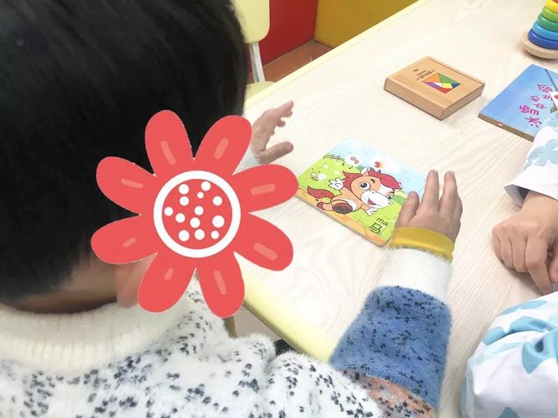 在专注力课的尾声,梦梦老师安排奇奇拼七巧板,她先让奇奇认真观察图形,然后把示意图盖了起来。